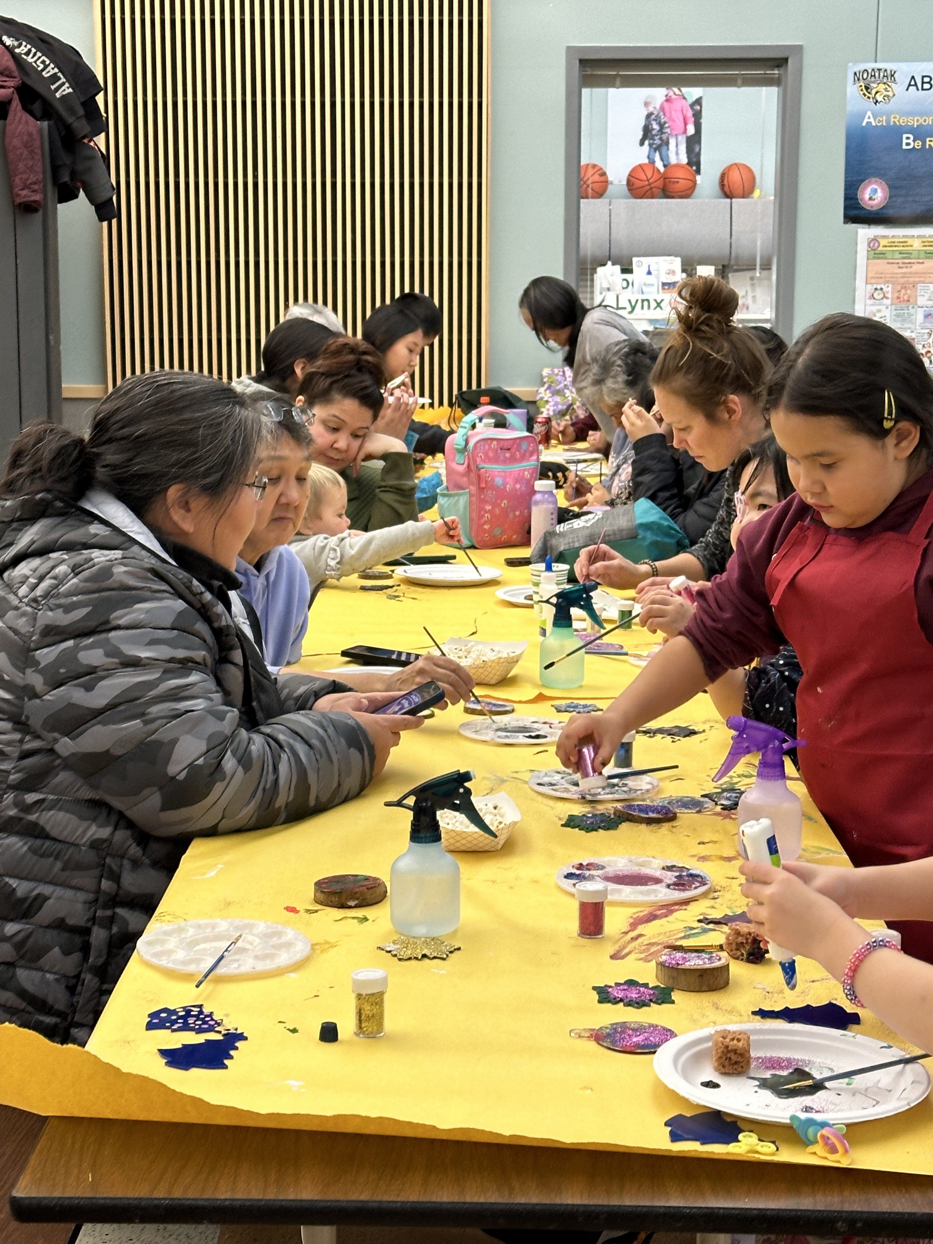 Toys for Tots was here this past week… and when I say here I mean in force! The Marines from Anchorage sent 10 big boxes full of toys for our students and community. (Ironically they were literally picked up from the airport using a sled 🙂 ). Wednesday night a cadre of 9 Marines, led by a local guide, rode snow machines from Kotzebue, through blowing snow, in single digit temperatures, to act as Santa and his elves and deliver gifts to our kids. All I can say is that they made the days of a LOT of kids. (so donate to them rather than the Salvation Army!)